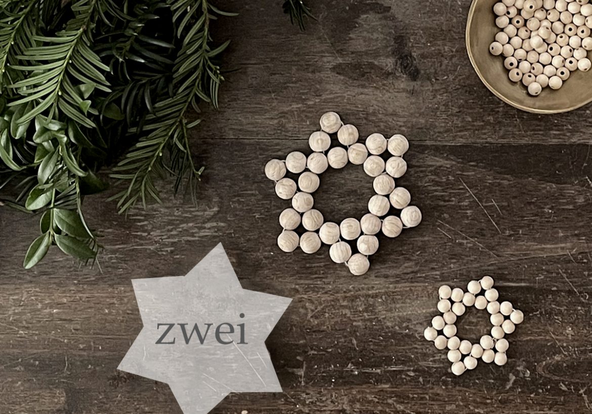 Heute zeige ich Euch einen Klassiker am Sternenhimmel – den aus Holzperlen. Als ich ein Kind war, haben wir diese Sterne aus roten Perlen gemacht. Unser Baum war oft NATURFARBEN und ROT, mit vielen selbst gemachten Anhängern – wie man ihn sich aus dem Nostalgie Bilderbuch vorstellt. Zumindest habe ich ihn so in Erinnerung.