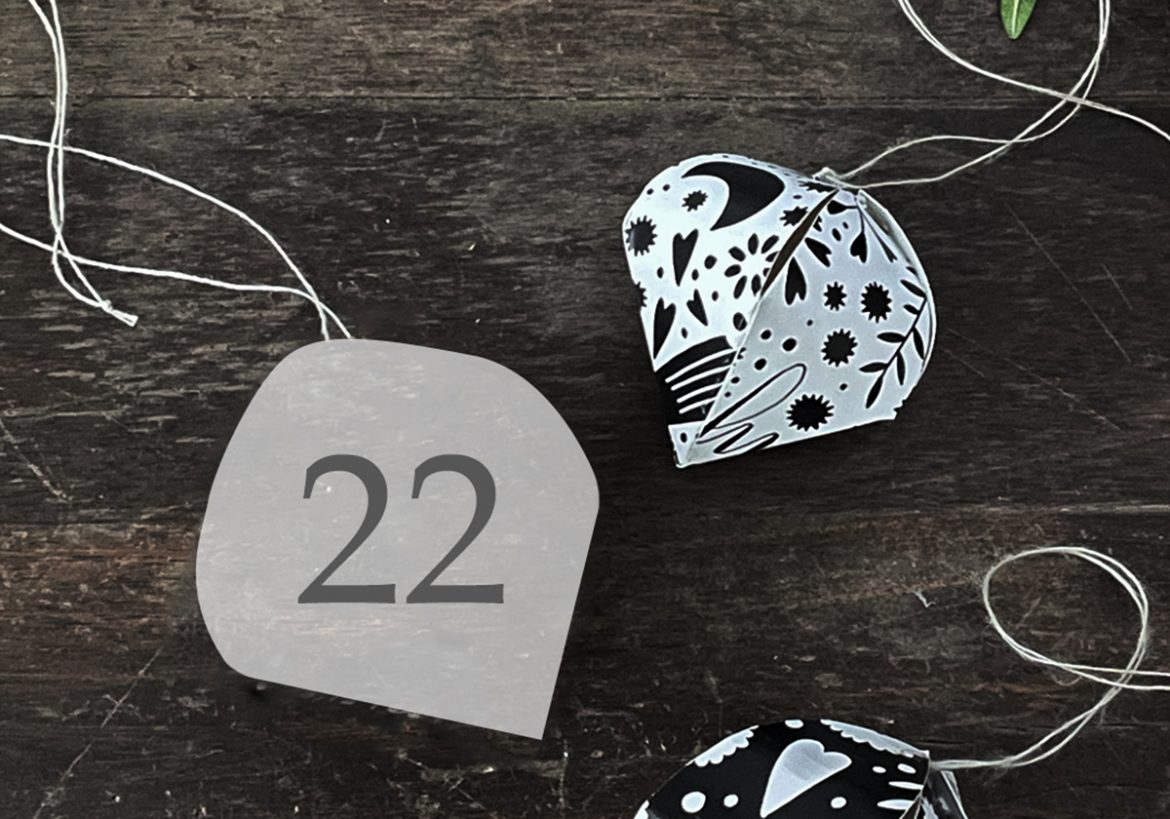 Vorlage ausdrucken, ausschneiden und auf Tonpapier oder Karten übertragen. An den gestrichelte Linien knicken. Ein Falzbeil ist hilfreich. (Damit kann man auch die oberen Laschen ein bisschen nach innen abrunden.) Mit einer Nadel ein Loch in jede Spitze stechen, Garn durchfädeln, zusammen ziehen. Nach Wunsch füllen.